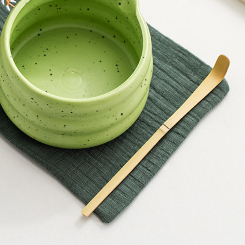 🎋 Cuchara Chashaku: Tallada en bambú, para medir con exactitud y elegancia la porción de cada taza.