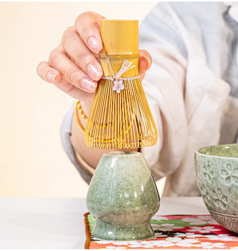 🏺 Soporte Naoshi (Cerámica): Indispensable para que tu Chasen Flor mantenga su forma y dure años. (Combina con el color del Chawan).