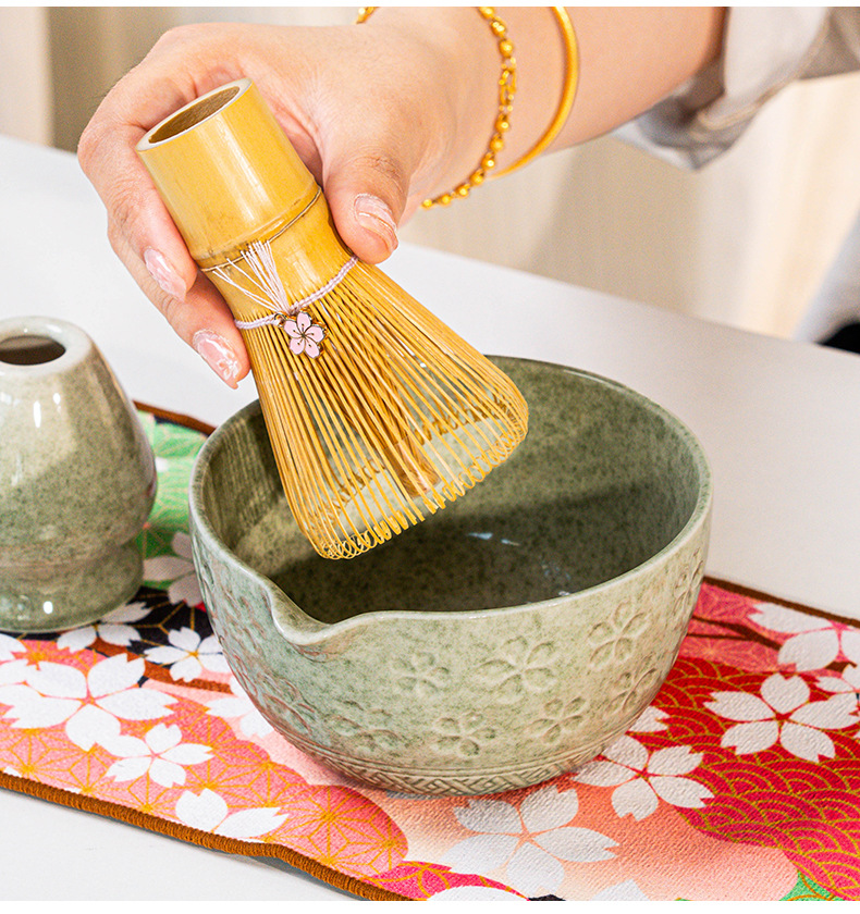 🥣 Chawan (Cuenco de Cerámica): El recipiente artesanal diseñado con la profundidad y el ancho ideales para un batido libre y profesional.